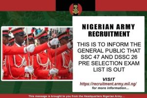The Nigeria Army has release list of shortlisted candidates for the Short Service Course 47 and Direct Short Service Course 26.