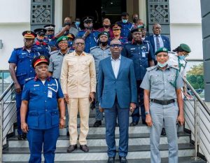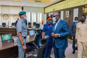 The Governor of Edo State, Mr Godwin Obaseki today, received the State Commandant of the Nigeria Security and Civil Defense Corps (NSCDC), Mr. George Edem and the Customs Area Controller in charge of Edo and Delta States, Ahmed Usman, in the State Government house in Benin City.