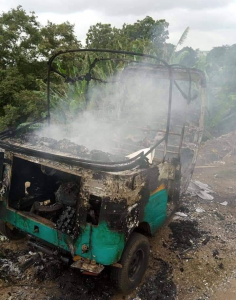 A couple in another car during the process saw what happened, and chased the tricycle operator until they got to Angwan Gada in Tudun Wada where luck out of them and were caught as the tricycle was set ablaze almost immediately.